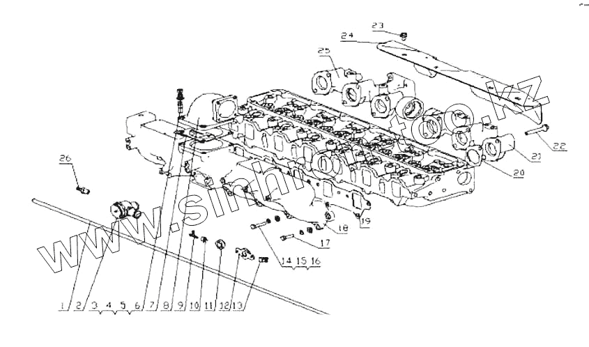 Каталог запасных частей к технике: Yuchai YC6G230N-30 (G69MA). G6800-1008000/04 Трубка впускная и выпускная