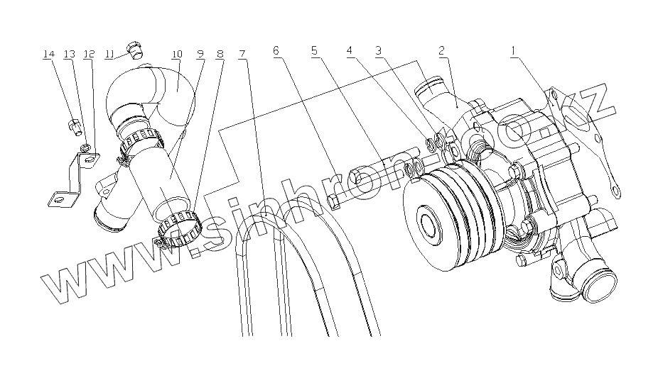 Каталог запасных частей к технике: Yuchai YC6G240-20 (G52MA). G460D-1307000 Водный насос в сборе