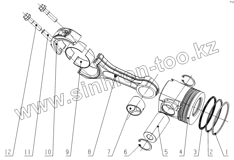 Каталог запасных частей к технике: Yuchai YC6G240-30. G6000-1004000 Piston and Connecting Rod