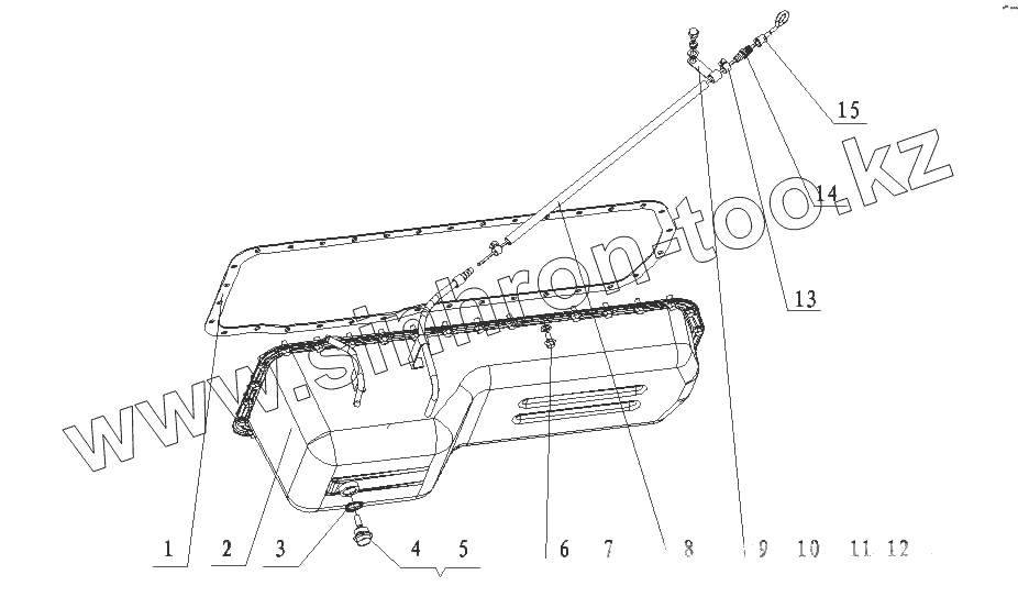 Каталог запасных частей к технике: Yuchai YC6G260N-20 (G64HA). G4623-1009000 Масляный поддон в сборе