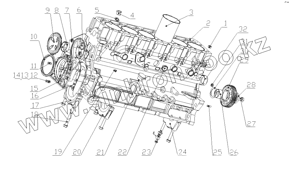 Каталог запасных частей к технике: Yuchai YC6G260N-20 (G64HA). G4700-1002010 Часть блока цилиндров