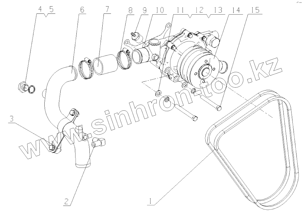 Каталог запасных частей к технике: Yuchai YC6G260N-50. G3RE2-1307000/02 Water Pump Assembly
