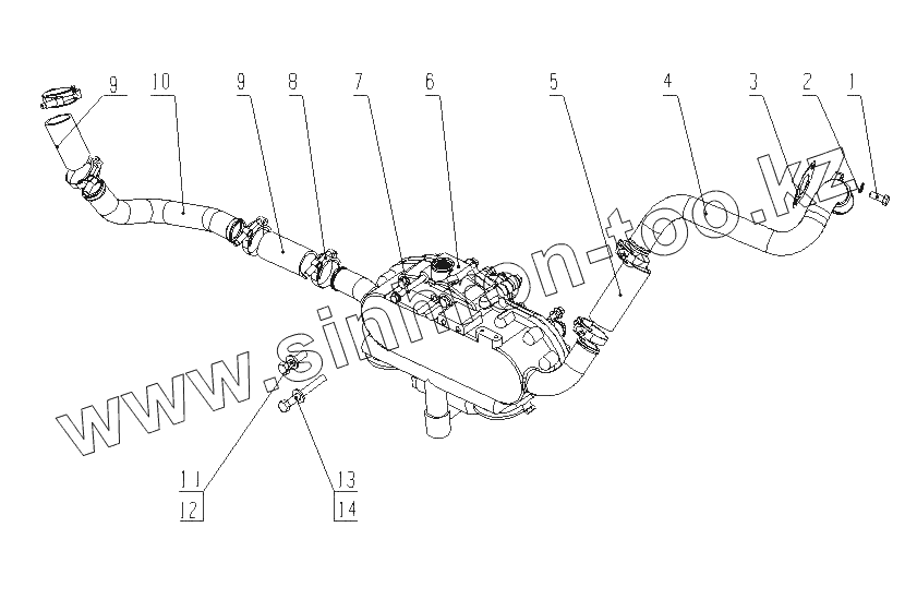 Каталог запасных частей к технике: Yuchai YC6G270-20 (G46MB). 237-1013000 Маслоохладитель в сборе