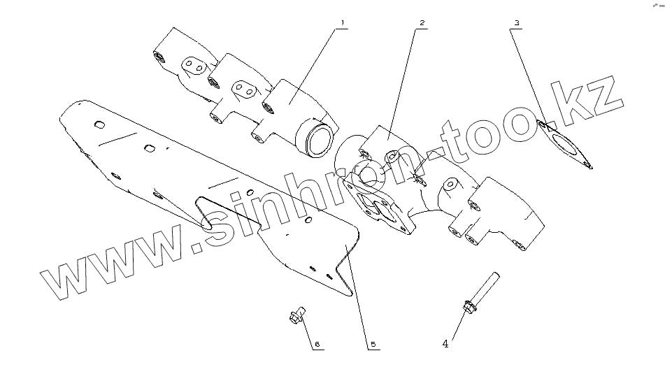 Каталог запасных частей к технике: Yuchai YC6G270-30 (G65QA). G6000-1008200/03 Часть выхлопного трубопровода