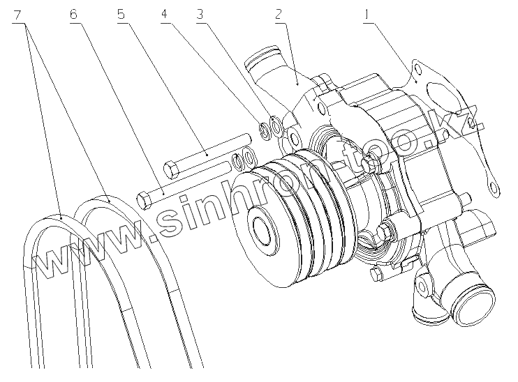 Каталог запасных частей к технике: Yuchai YC6G300-20 (G4704). G4704-1307000 Водный насос в сборе
