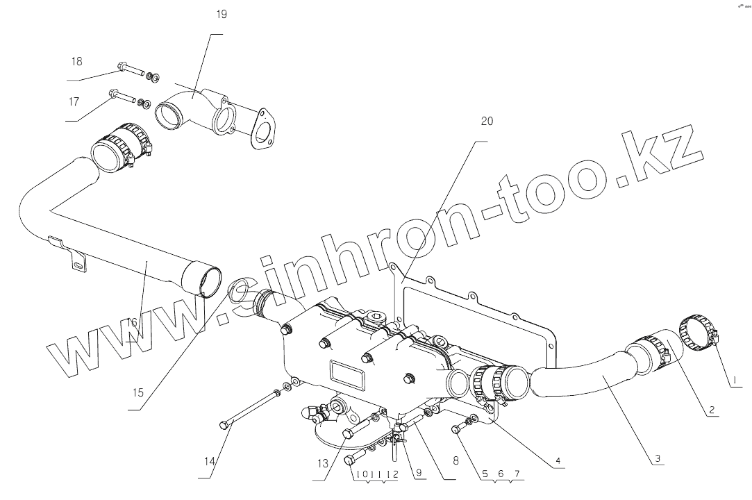 Каталог запасных частей к технике: Yuchai YC6J125Z-T20. B8700-1013000/08 Oil Cooler Assembly