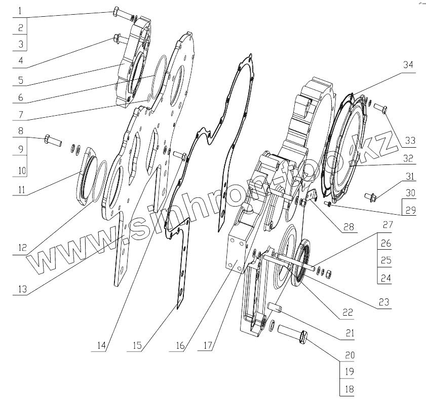 Каталог запасных частей к технике: Yuchai YC6J125Z-T20. J8000-1002030/07 Gear Housing Parts