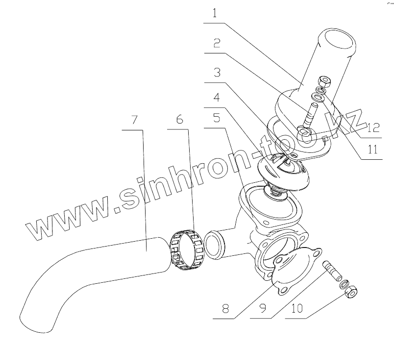 Каталог запасных частей к технике: Yuchai YC6J125Z-T20. J8000-1306000/05 Thermostat Assembly