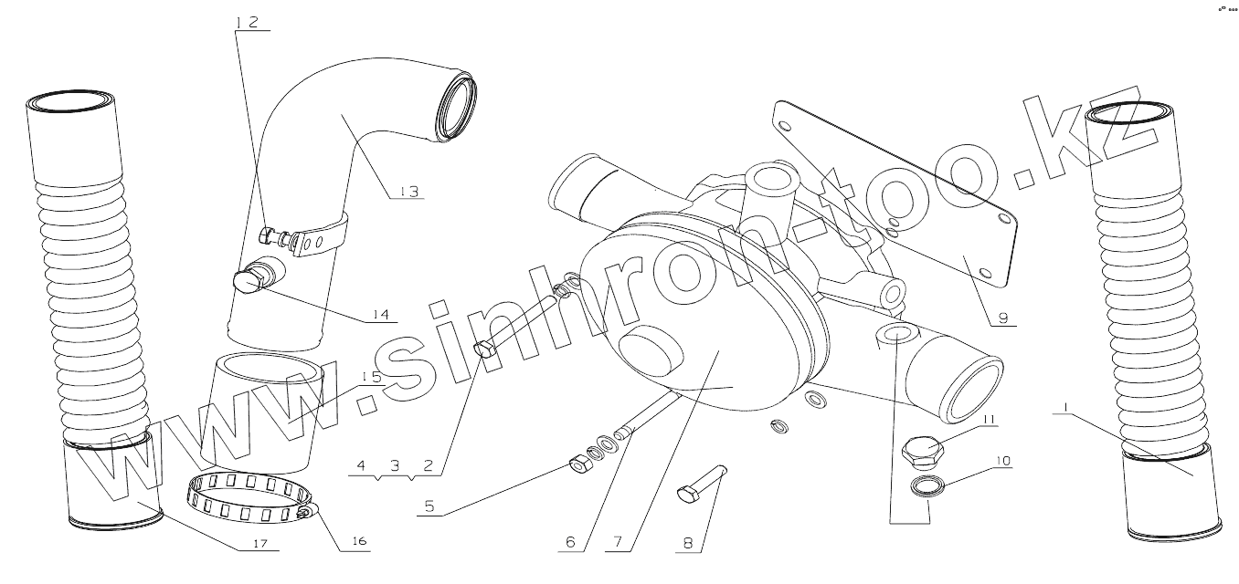 Каталог запасных частей к технике: Yuchai YC6J125Z-T20. J8004-1307000/03 Water Pump Assembly