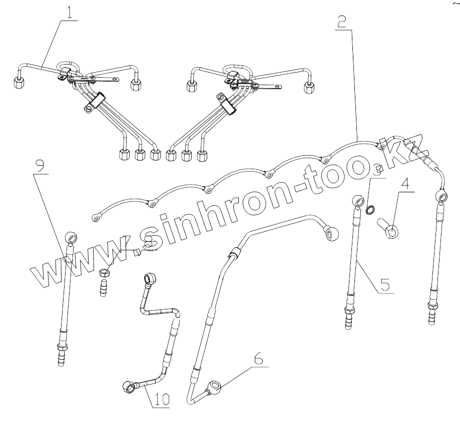 Каталог запасных частей к технике: Yuchai YC6J125Z-T20. J80G0-1104000/03 Supply System Pipeline Assembly