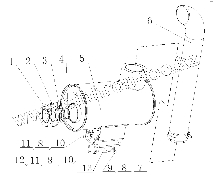 Каталог запасных частей к технике: Yuchai YC6J125Z-T21. J80GM-1201000/01 Muffler Assembly