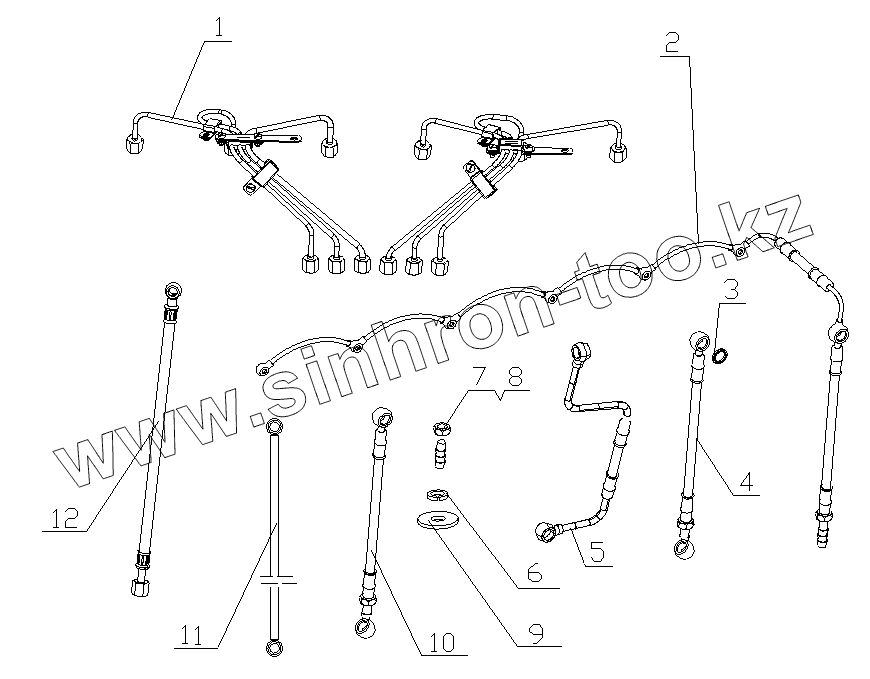 Каталог запасных частей к технике: Yuchai YC6J125Z-T21. J8AG1-1104000/03 Supply System Pipeline Assembly