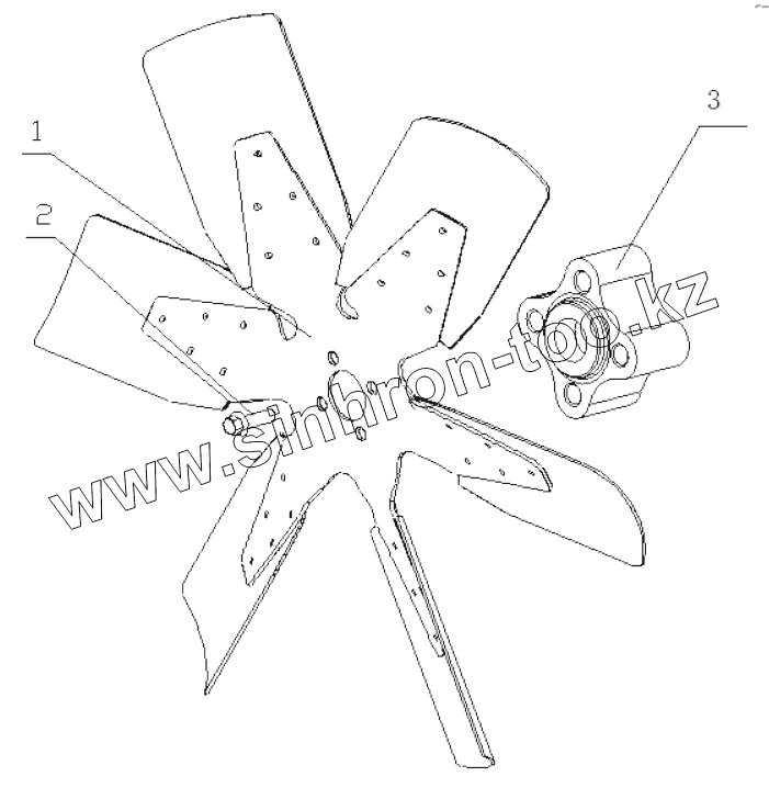 Каталог запасных частей к технике: Yuchai YC6J125Z-T22. B7742-1308000/01 Fan Assembly