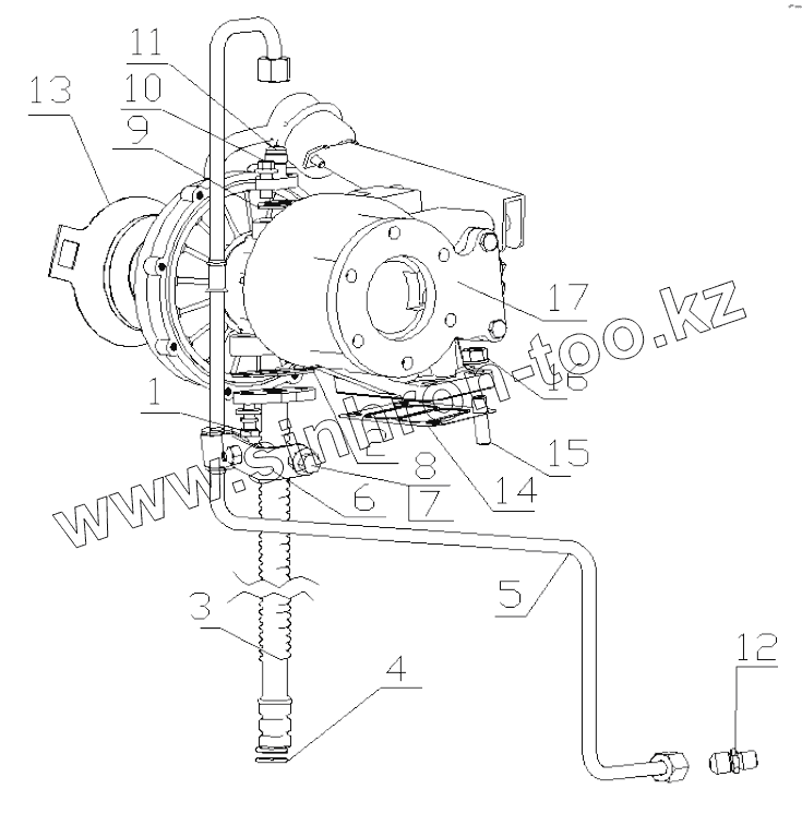 Каталог запасных частей к технике: Yuchai YC6J125Z-T22. J7M00-1118000/02 Turbocharger Assembly