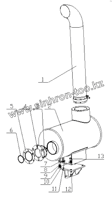 Каталог запасных частей к технике: Yuchai YC6J125Z-T22. J8000-1201000/18 Muffler Assembly