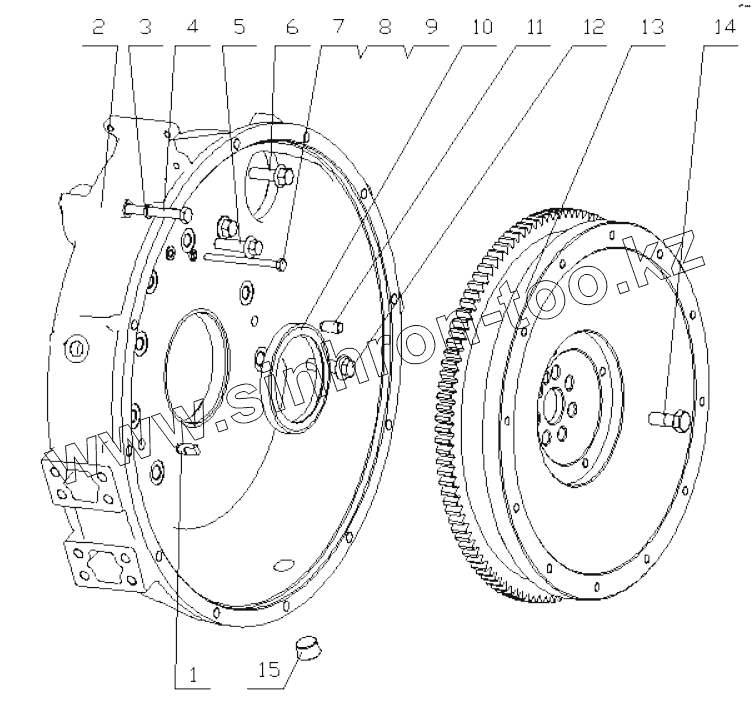 Каталог запасных частей к технике: Yuchai YC6J125Z-T22. J80G7-1600000/01 Power Output Assembly