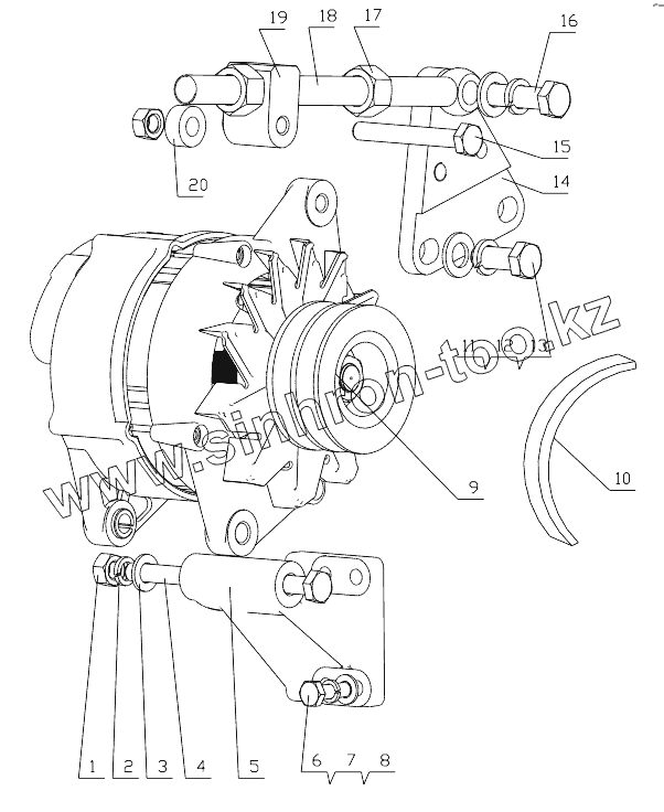 Каталог запасных частей к технике: Yuchai YC6J125Z-T22. J8201-3701000/02 Alternator Assembly