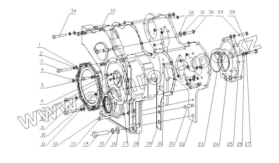 Каталог запасных частей к технике: Yuchai YC6J180-21 (J49D1). J3300-1002200 Части корпуса шестерни