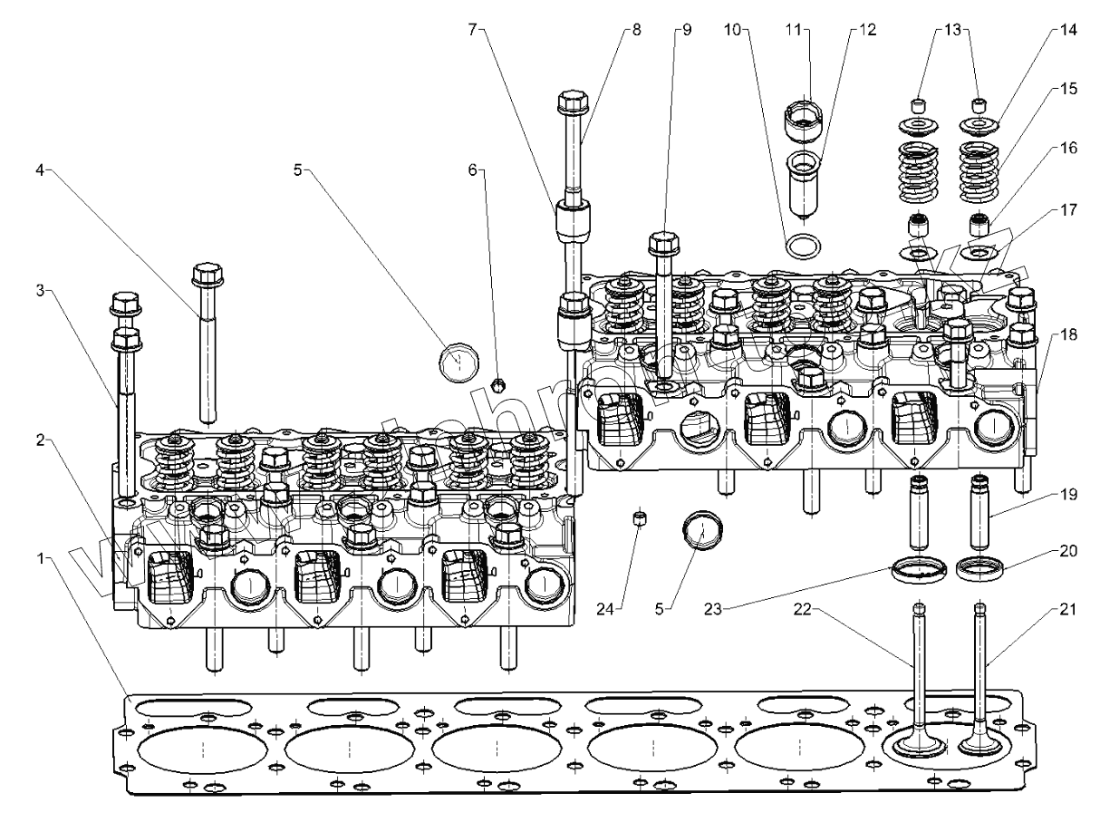 Каталог запасных частей к технике: Yuchai YC6J190-T301. Крышка цилиндра в сборе JYA00-1003000A