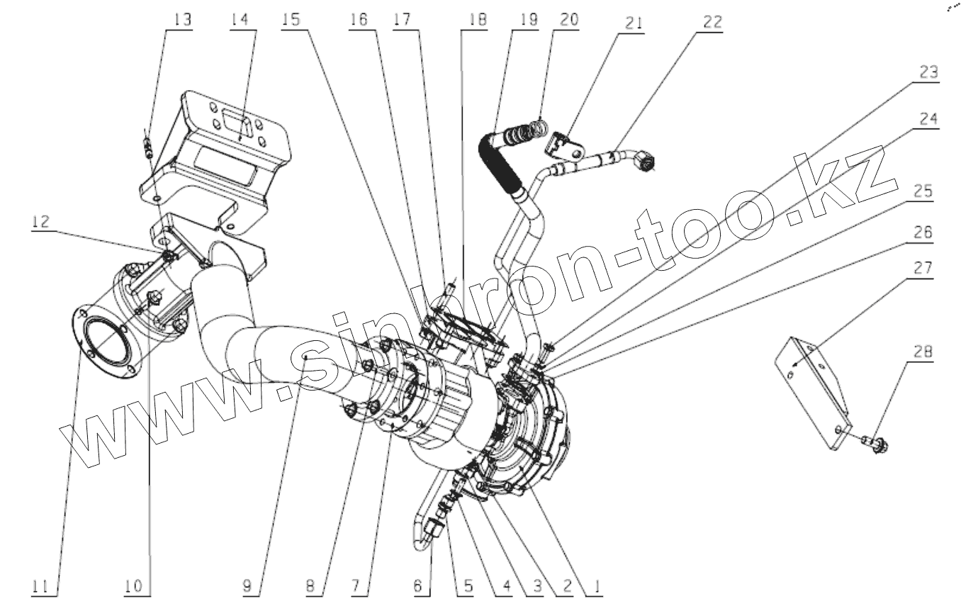 Каталог запасных частей к технике: Yuchai YC6J190-T301. Нагнетатель в сборе JY40T6-1 18000