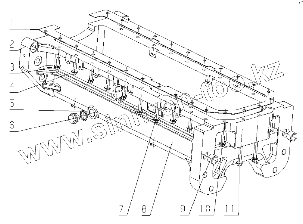Каталог запасных частей к технике: Yuchai YC6J190-T301. Поддон картера в сборе B7A00-1009000