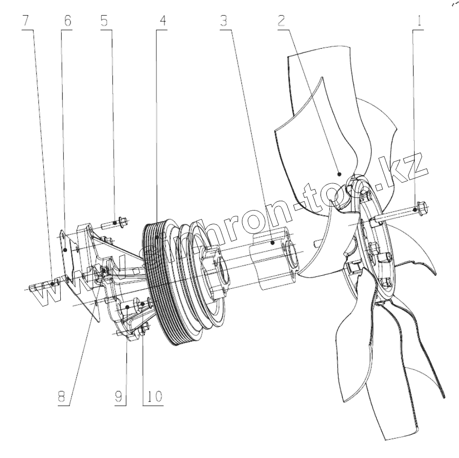Каталог запасных частей к технике: Yuchai YC6J190-T301. Вентилятор в сборе JY20TH-1308000