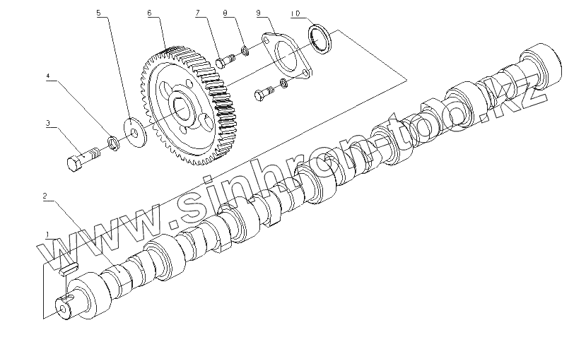 Каталог запасных частей к технике: Yuchai YC6J210-20 (J42SA). 630-1006000A Распределительный вал в сборе