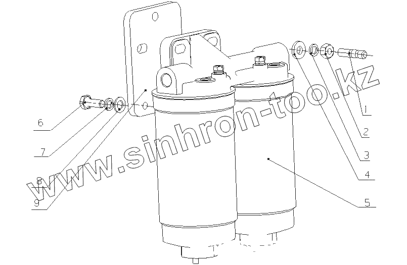 Каталог запасных частей к технике: Yuchai YC6J210-20 (J42SA). J42QA-1105000 Топливный фильтр в сборе