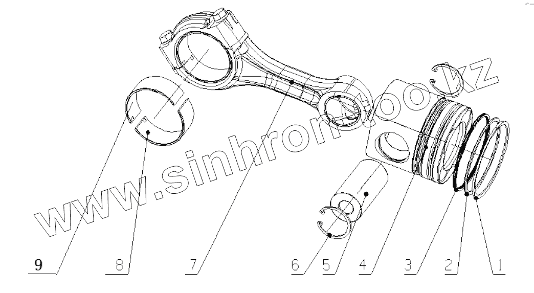 Каталог запасных частей к технике: Yuchai YC6J210N-52. J3D00-1004000/04 Piston Connecting Rod Assembly