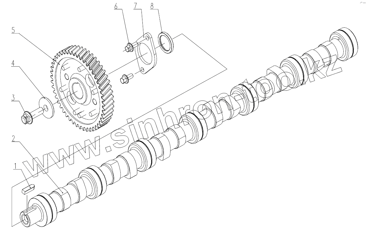 Каталог запасных частей к технике: Yuchai YC6J210N-52. J3D00-1006000/02 Camshaft Assembly