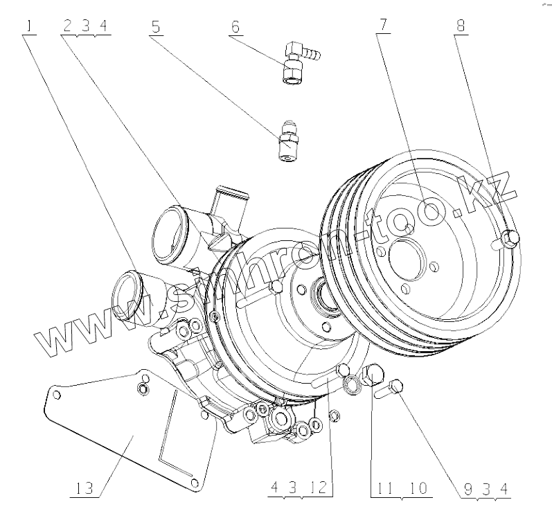 Каталог запасных частей к технике: Yuchai YC6J210N-52. J4TLA-1307000/06 Water Pump Assembly