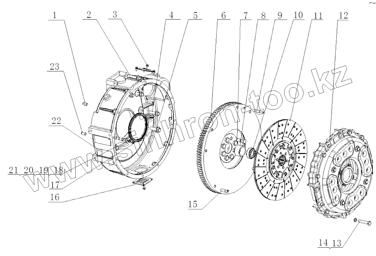 Каталог запасных частей к технике: Yuchai YC6J225N-52. J4B0C-1600000/01 Power Output Assembly