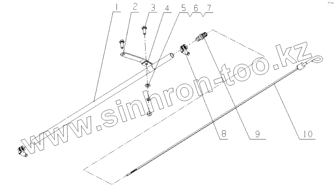 Каталог запасных частей к технике: Yuchai YC6J225N-52. J55G1-1028000/02 Oil Dipstick Part
