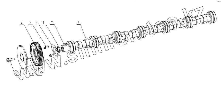 Каталог запасных частей к технике: Yuchai YC6J245-30 (J61LA). J5600-1006000 Распредвал