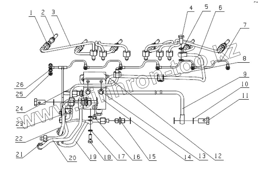 Каталог запасных частей к технике: Yuchai YC6J245-30 (J61LA). J5600-1104000 Топливные трубки