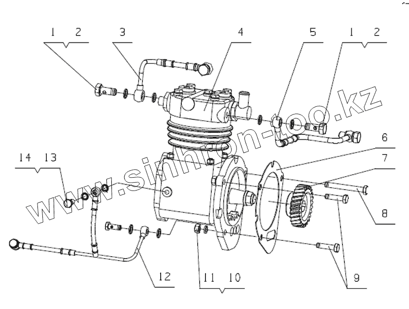 Каталог запасных частей к технике: Yuchai YC6J245-30 (J61LA). J6000-3509000 Воздушный компрессор