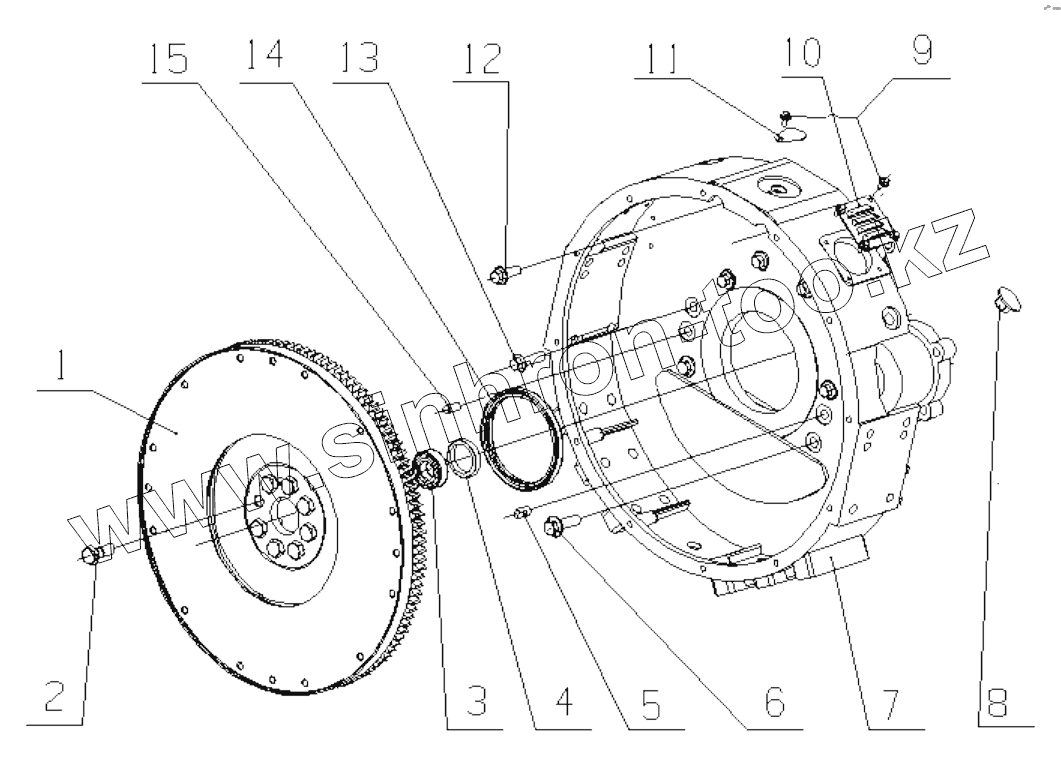 Каталог запасных частей к технике: Yuchai YC6J245-50. J5J8A-1600000/02 Power Output Assembly
