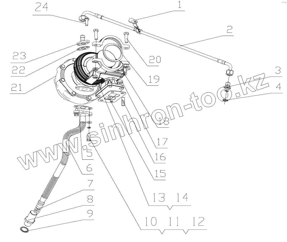 Каталог запасных частей к технике: Yuchai YC6J245-50. J5N9A-1118000/03 Turbocharger Assembly