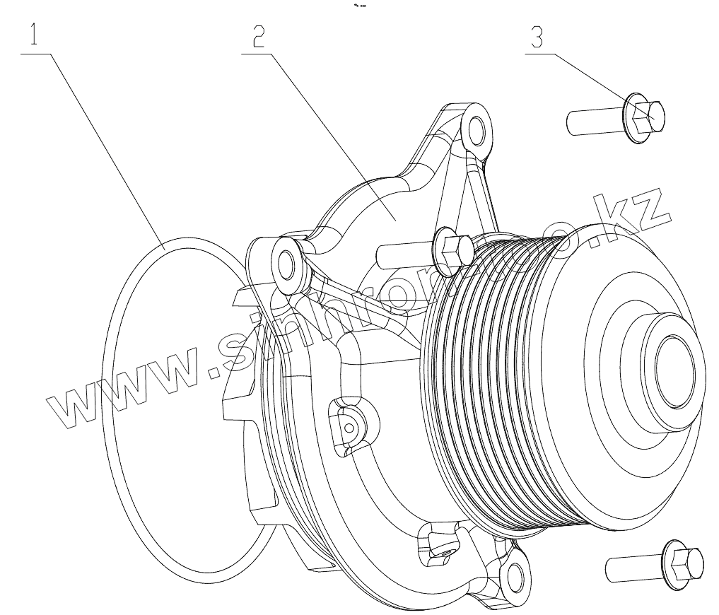 Каталог запасных частей к технике: Yuchai YC6K. K6000-1307000 Water Pump Assembly