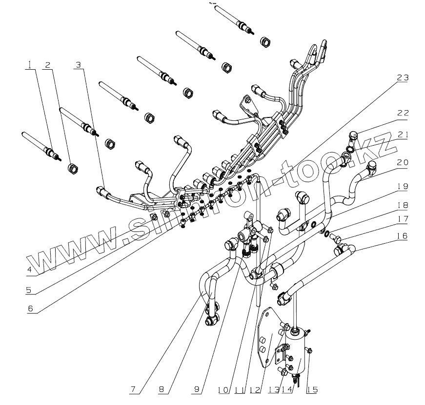 Каталог запасных частей к технике: Yuchai YC6K. K7500-1104000 Supply line assembly