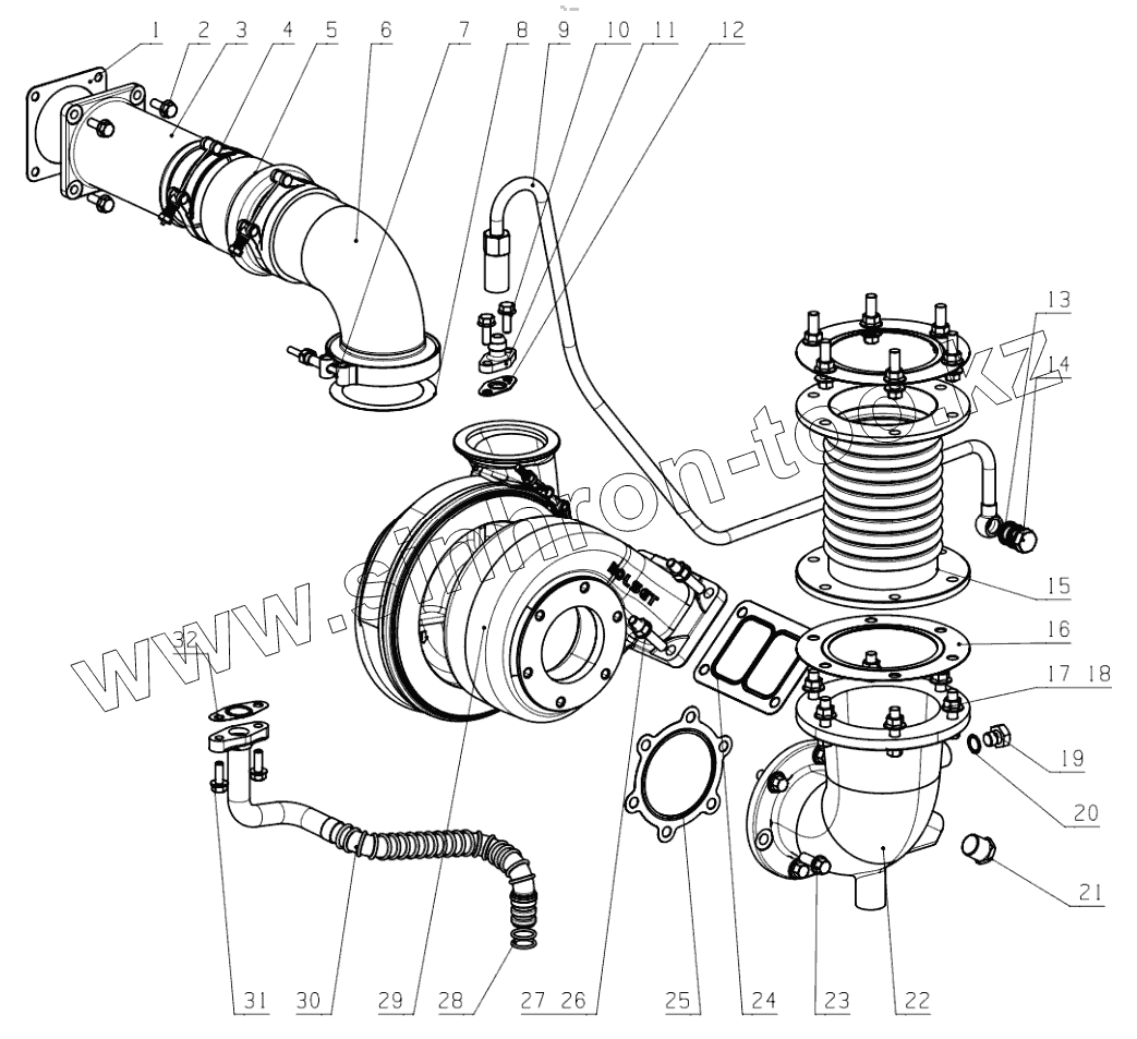 Каталог запасных частей к технике: Yuchai YC6K. KC100-1118000 Turbocharger Assembly