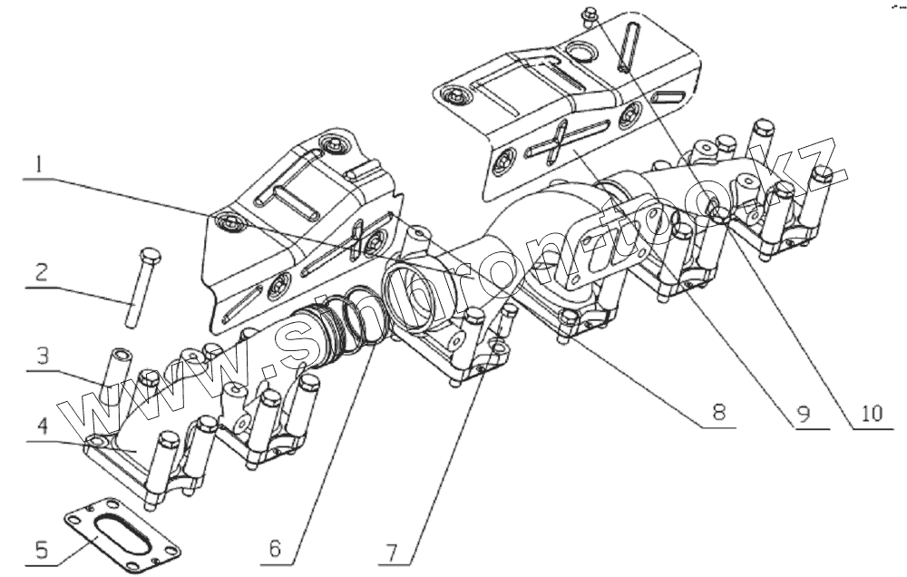 Каталог запасных частей к технике: Yuchai YC6L260-30. L3002-1008200 Exhaust manifold subassembly