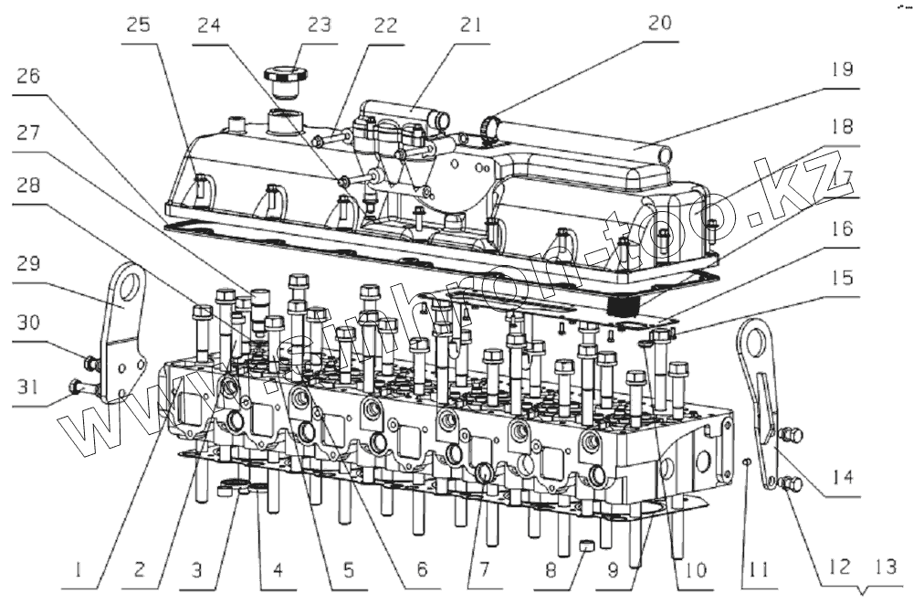 Каталог запасных частей к технике: Yuchai YC6L260-30. L30KA-1003000 Cylinder head assembly