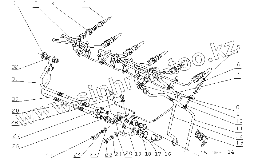 Каталог запасных частей к технике: Yuchai YC6L280-30 (L38MA). L36MA-1104000 Топливопровод в сборе