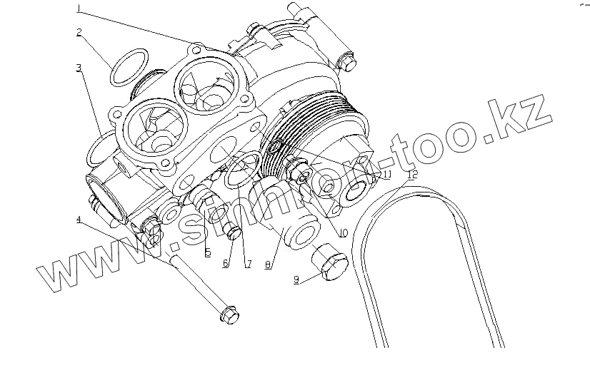 Каталог запасных частей к технике: Yuchai YC6L280-30 (L38MA). L36MA-1307000 Водный насос в сборе