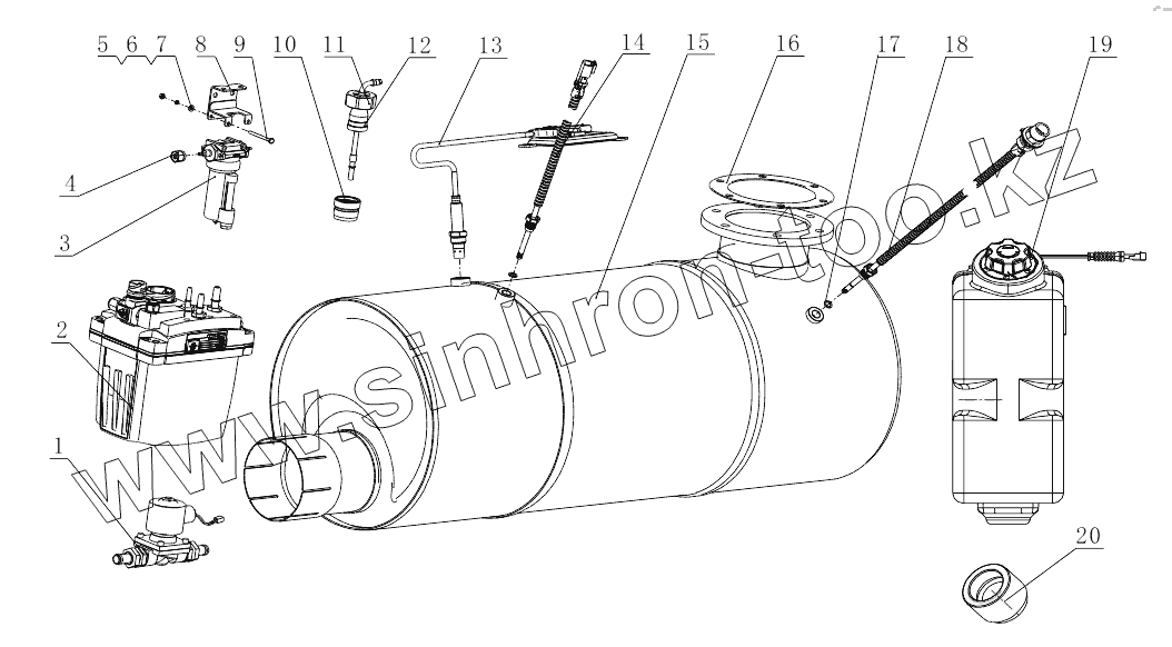 Каталог запасных частей к технике: Yuchai YC6L310-50. CT-SR21RLBD5-0119/03 Exhaust aftertreatment assembly