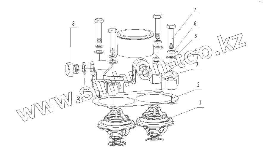Каталог запасных частей к технике: Yuchai YC6L330-20 (L33YA). L3099-1306000/05 Термостат в сборе