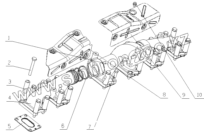 Каталог запасных частей к технике: Yuchai YC6L350-20 (L30JA). L3002-1008200 Части выхлопа