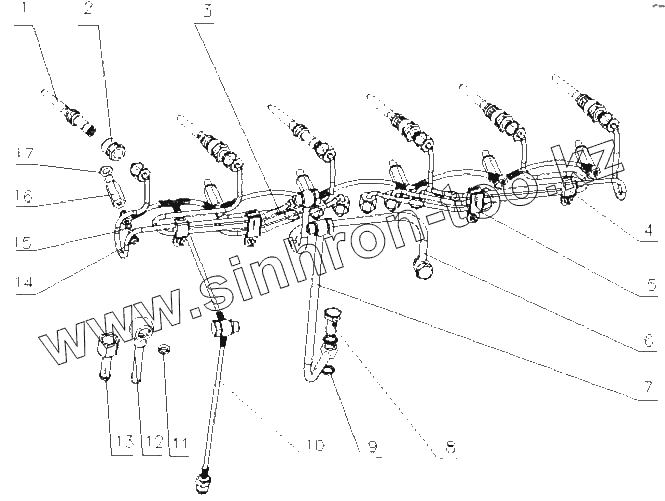 Каталог запасных частей к технике: Yuchai YC6L350-20 (L30JA). L30JA-1104000 Топливопровод в сборе