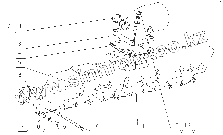 Каталог запасных частей к технике: Yuchai YC6L350-20 (L30JA). L30L2-1008100 Впускной коллектор